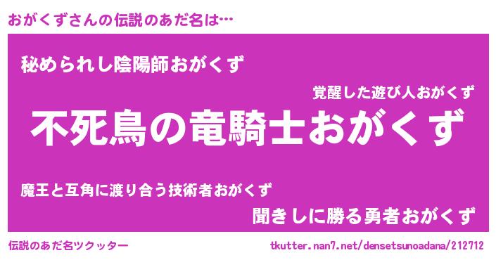 | ヒーロー風カッコイイあだ名 | 『スーパーオガクズ』『仮面オガダー』 |