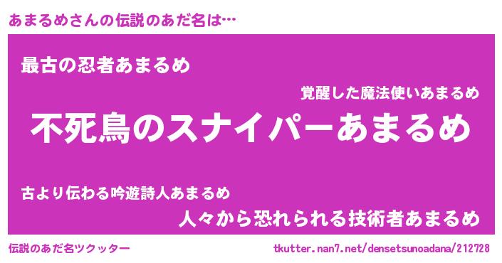 | 男性向けラノベタイトル風あだ名 | 『あまるめの憂鬱』『魔弾の王とあまるめ』 |