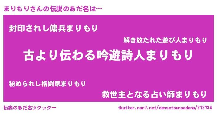 | 意味不明あだ名 | 『自称まりもり』『永久保存まりもり』 |