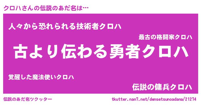 | 意味不明あだ名 | 『住所不定無職クロハ(79歳)』『自称クロハ』 |