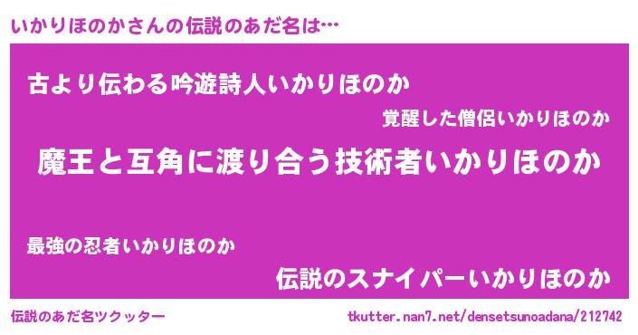| 意味不明あだ名 | 『自称いかりほのか』 |