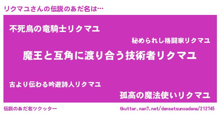 | ヒーロー風カッコイイあだ名 | 『愛の使者リクマユ』『スーパーリクマユ』 |