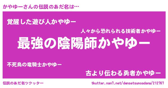 | ファンタジー風あだ名 | 『ゼカヤトゥ』『エターナルカヤユーー』 |