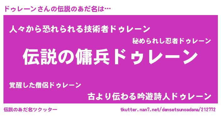 | 料理風あだ名 | 『ドゥレーンのカルパッチョ風』 |