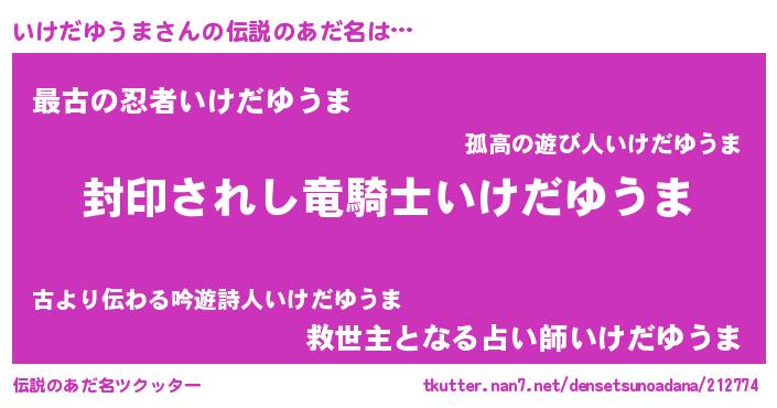 | 胡散臭い通販商品みたいなあだ名 | 『億万長者になれるブレスレット…その名も「いけだゆうま」』 |