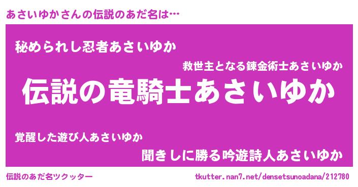 | ヒーロー風カッコイイあだ名 | 『スーパーアサイユカ』『ネオアサイユカ』 |