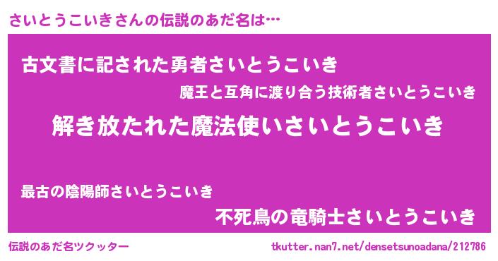 | 意味不明あだ名 | 『とにかく怪しいさいとうこいき』 |