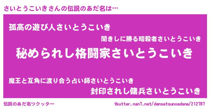 | 肩書あだ名 | 『さいとうこいき閣下』 |