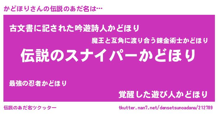 | 胡散臭い通販商品みたいなあだ名 | 『必ず成功する霊験あらたかなお札…その名も「かどほり」』 |