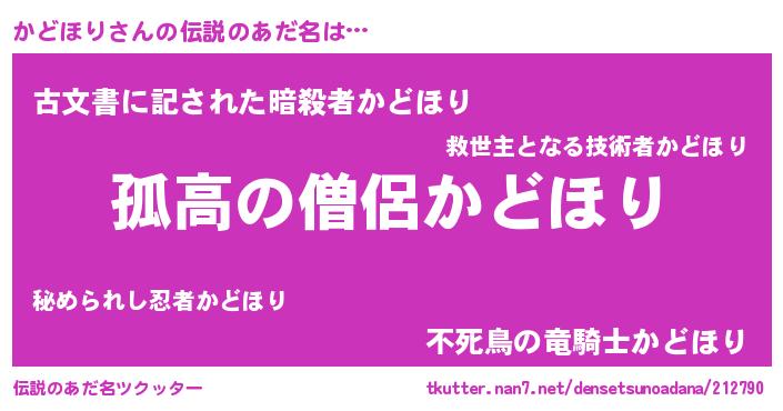 | 意味不明あだ名 | 『とにかく怪しいかどほり』 |