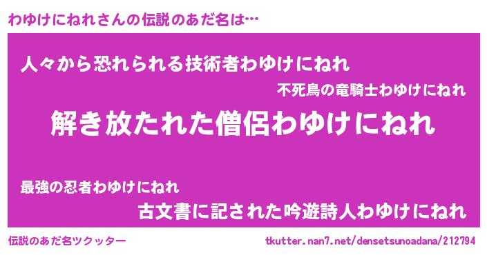 | ポケモン風あだ名 | 『ワーユイ』『ヒワユケニネレ』 |