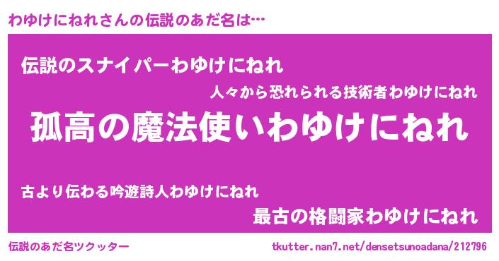 | ポケモン風あだ名 | 『ヒワユケニネレ』『ワユキング』 |