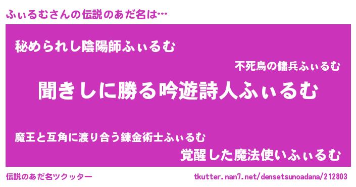 | 女子向けラノベタイトル風あだ名 | 『ふぃるむアンティーク』 |
