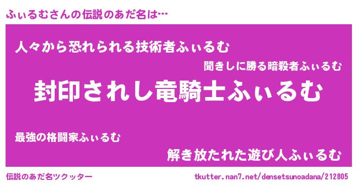 | 胡散臭い通販商品みたいなあだ名 | 『億万長者になれるブレスレット…その名も「ふぃるむ」』 |