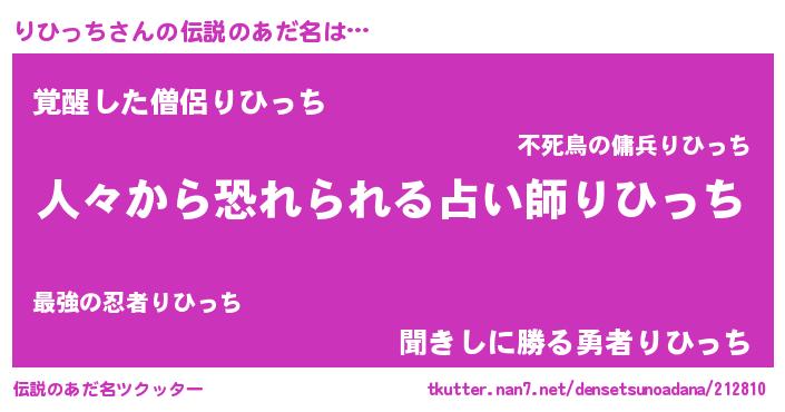 | 女子向けラノベタイトル風あだ名 | 『りひっちが死なない童話 林檎のりひっちの診療簿』 |