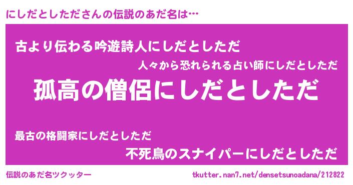 | 胡散臭い通販商品みたいなあだ名 | 『信頼と実績のネックレス…その名も「にしだとしただ」』 |
