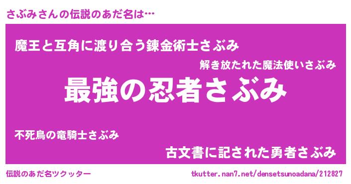 | 意味不明あだ名 | 『自称さぶみ』『さぶみフォーエバー』 |