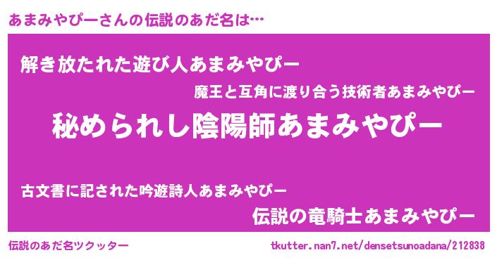 | ファンタジー風あだ名 | 『エターナルアマミヤピーー』 |