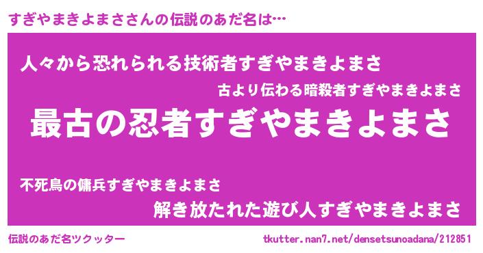 | 男性向けラノベタイトル風あだ名 | 『やはりすぎやまきよまさの青春ラブコメはまちがっている 』 |