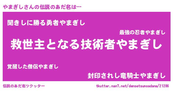 | 男性向けラノベタイトル風あだ名 | 『ノーゲーム・ノーヤマギシ』 |