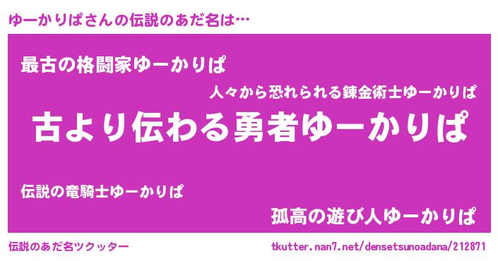 | 意味不明あだ名 | 『永久保存ゆーかりぱ』 |