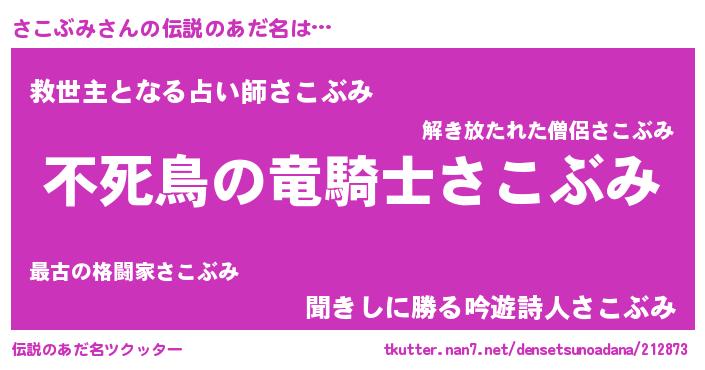 | 意味不明あだ名 | 『ペロリンさこぶみ』『自称さこぶみ』 |