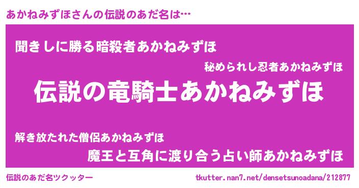 | 意味不明あだ名 | 『住所不定無職あかねみずほ(12歳)』 |