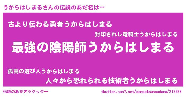 | ファンタジー風あだ名 | 『エターナルウカラハシマルー』 |
