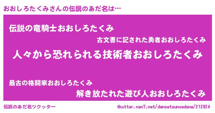 | 意味不明あだ名 | 『自称おおしろたくみ』 |