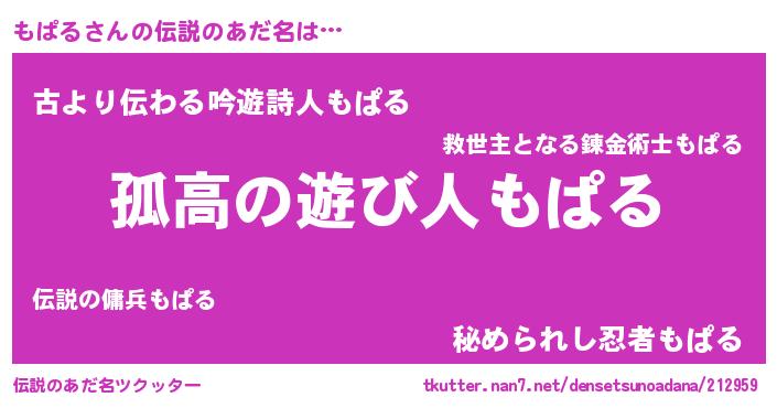 | 意味不明あだ名 | 『とにかく怪しいもぱる』『自称もぱる』 |