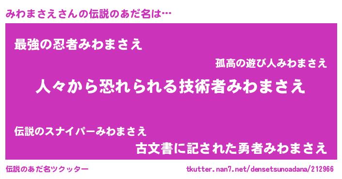 | 胡散臭い通販商品みたいなあだ名 | 『100人中100人が認めたマグネット磁石…その名も「みわまさえ」』 |