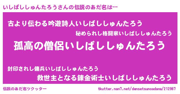 | 意味不明あだ名 | 『とにかく怪しいいしばししゅんたろう』 |