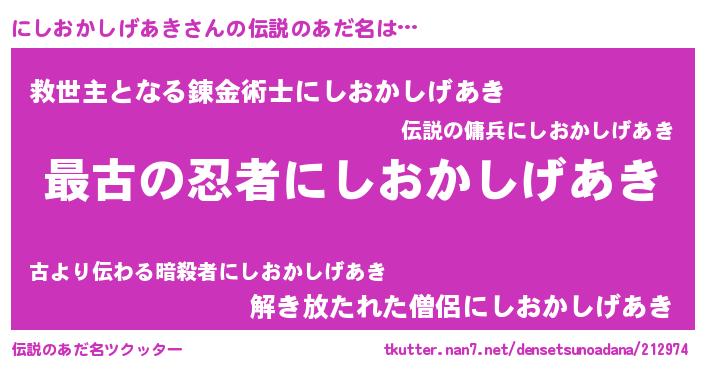 | 意味不明あだ名 | 『にしおかしげあきフォーエバー』 |