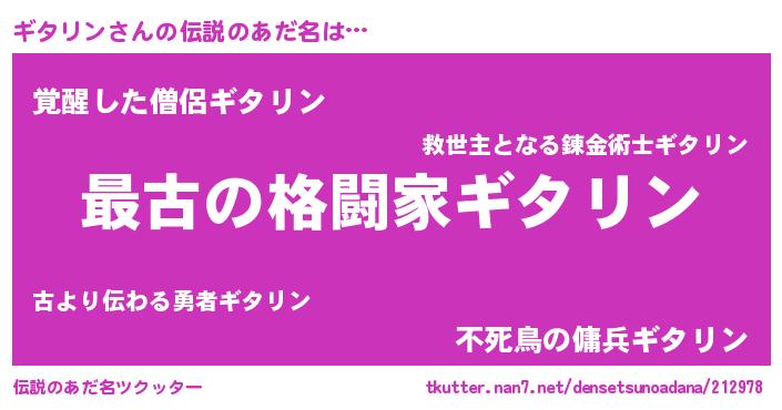 | ヘコむあだ名 | 『豆乳』『ギタぷりん』『ギタにゅー』 |