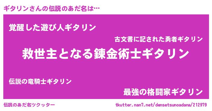 | ヒーロー風カッコイイあだ名 | 『天空の使者ギタリン』『炎刃騎士ギタ』 |