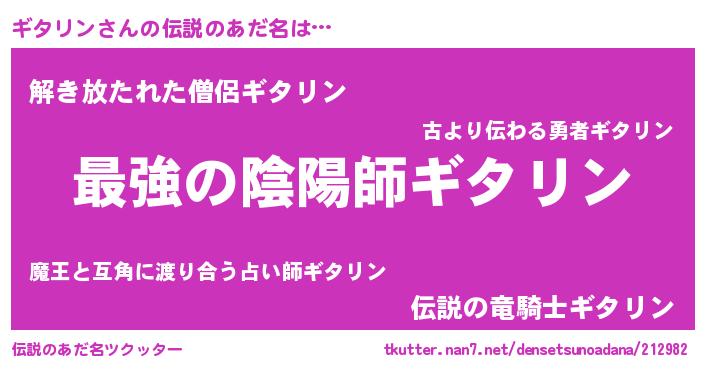 | 意味不明あだ名 | 『住所不定無職ギタリン(71歳)』 |