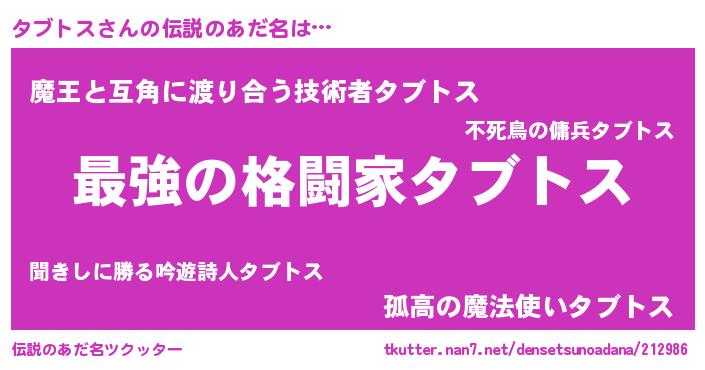 | 意味不明あだ名 | 『タブトスフォーエバー』『自称タブトス』 |