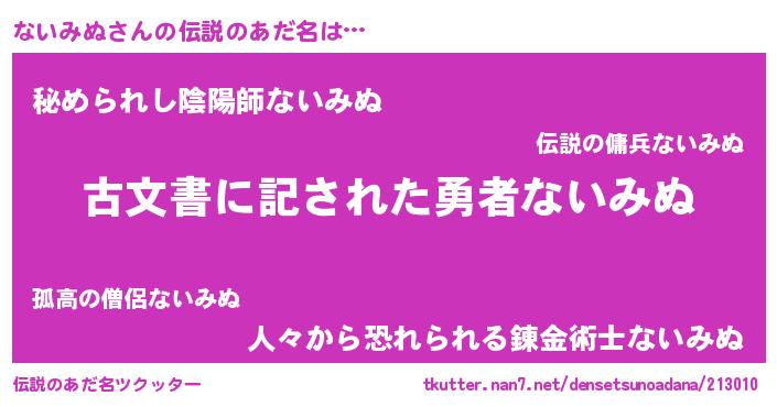 | ヒーロー風カッコイイあだ名 | 『ネオナイミヌ』『ウルトラないみぬマン』 |