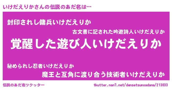 | 女子向けラノベタイトル風あだ名 | 『悪役いけだえりかに転生したようですが、知った事ではありません』 |