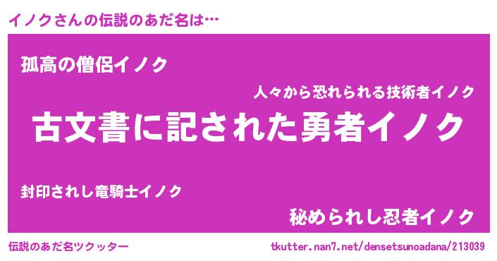 | ヒーロー風カッコイイあだ名 | 『仮面イノダー』『ネオイノク』 |