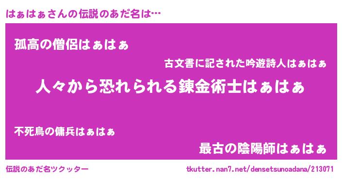 | 意味不明あだ名 | 『住所不定無職はぁはぁ(93歳)』 |