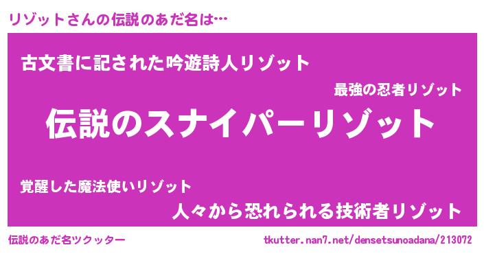 | 男性向けラノベタイトル風あだ名 | 『リゾットスレイヤー』 |