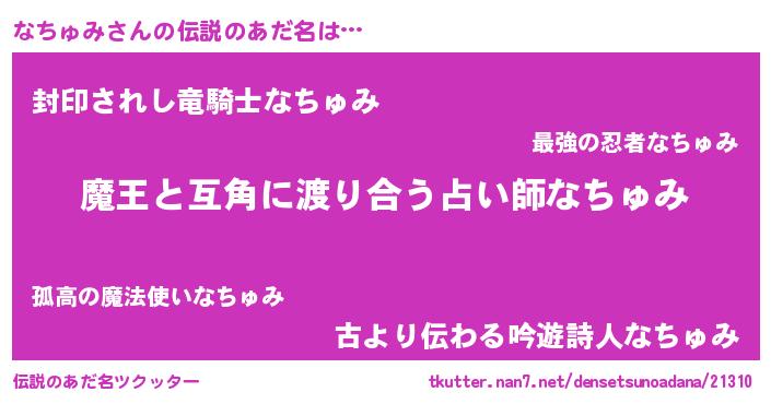 | 男性向けラノベタイトル風あだ名 | 『転生したらなちゅみだった件』 |