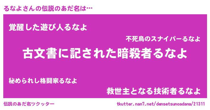| 意味不明あだ名 | 『ヨモギ科るなよ属』『永久保存るなよ』 |