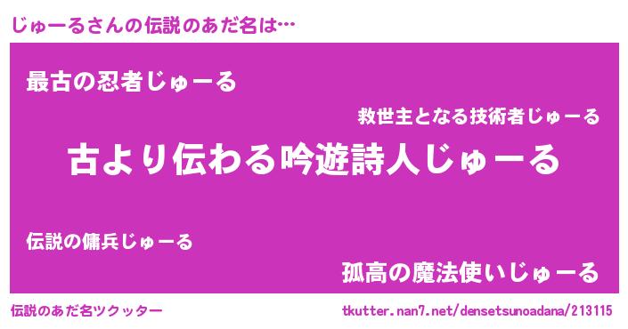 | 意味不明あだ名 | 『自称じゅーる』『永久保存じゅーる』 |