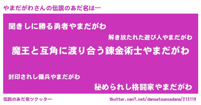 | ヒーロー風カッコイイあだ名 | 『愛の使者やまだがわ』『仮面ヤマダー』 |
