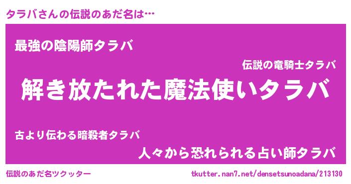 | 胡散臭い通販商品みたいなあだ名 | 『伝統あるサプリメント…その名も「タラバ」』 |