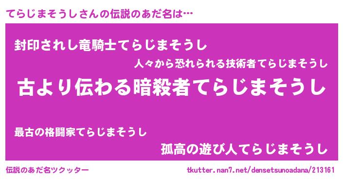 | ヒーロー風カッコイイあだ名 | 『仮面テラダー』『ネオテラジマソウシ』 |