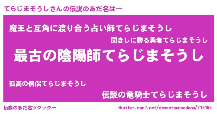 | 男性向けラノベタイトル風あだ名 | 『やはりてらじまそうしの青春ラブコメはまちがっている 』 |