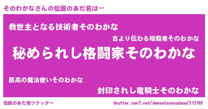 | ファンタジー風あだ名 | 『エターナルソノワカナー』『ソノフェル』 |